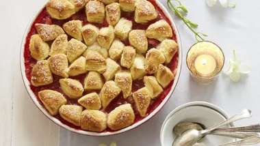 Short on time? Make the strawberry rhubarb mixture (step 4) up to 2 days ahead of time. Store covered in refrigerator until ready to use.