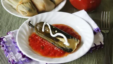 • Chiles rellenos are one of Mexico's more popular dishes, especially in Puebla where the poblano pepper is from. Traditional Mexican baked chile relleno recipes were filled with meat picadillo, but this recipe has since evolved and many peppers are now stuffed with different regional cheeses, dipped in egg wash, and fried. My grandmother would often use the bell peppers she had on hand in El Salvador in place of the poblano pepper. As you’ll see, this baked chile relleno recipe can be used as the base for a number of other flavorful dishes that are easy-to-prepare. We can always be creative in the kitchen when we use what we have on hand!