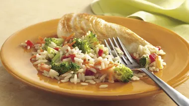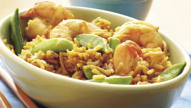 Glam up basic sugar snap peas by sautéing this classic veggie with onion and garlic, then blending in thyme-flavored rice.