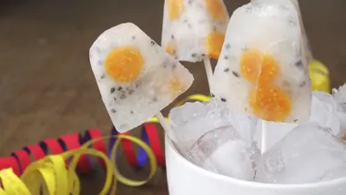 Peel and cut up 1 mango, place in blender and blend until pureed, set aside.