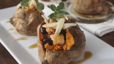 Coconut oil highlights the sweet flavor of the sweet potato.