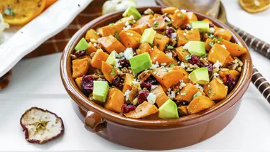 You can change the presentation of the dish by chopping the sweet potatoes in different shapes, like squares or sticks.