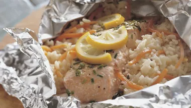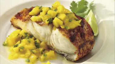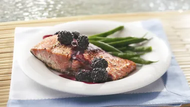 • A fast, four-ingredient tartar sauce tastefully tops grilled salmon patties.