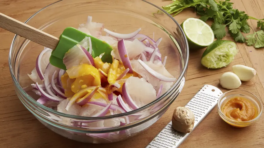 Basic ceviche only has five ingredients: fish, salt, onion, chili pepper (ají) and lime. All the versions we know today have come from this base.