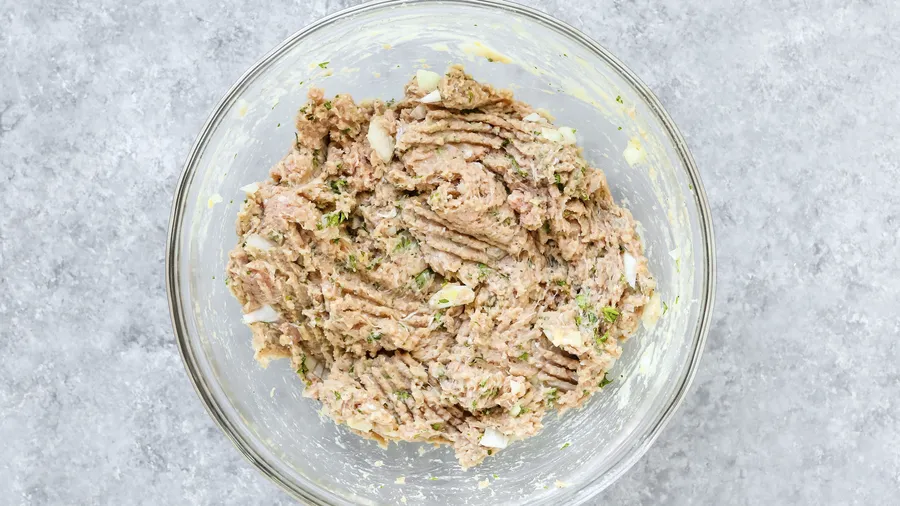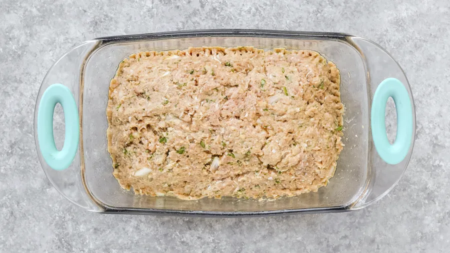 In a large bowl, combine the ingredients for the turkey cake until they’re well mixed.