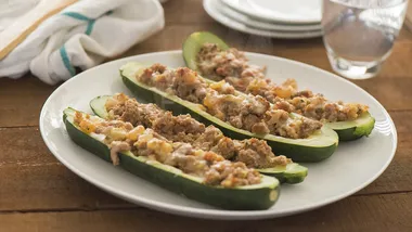 Cut around the top of each jalapeño pepper (but not completely through.) Carefully pull the top out of the pepper, removing as many of the seeds as possible. Scrape out the remaining seeds and veins using a sharp knife.