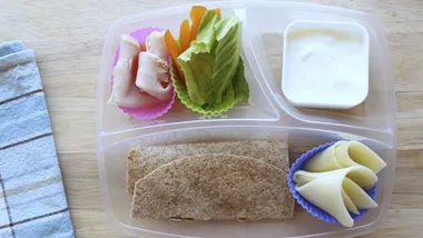 • Peach yogurt and Dijon mustard are the special ingredients that make this turkey vegetable wrap taste great! Serve a half wrap with soup for a healthy low-fat meal.