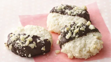 Cover cookie sheet with waxed paper. Heat white baking chips and 1 tablespoon shortening in 2-quart saucepan over low heat, stirring constantly, until chips are melted.