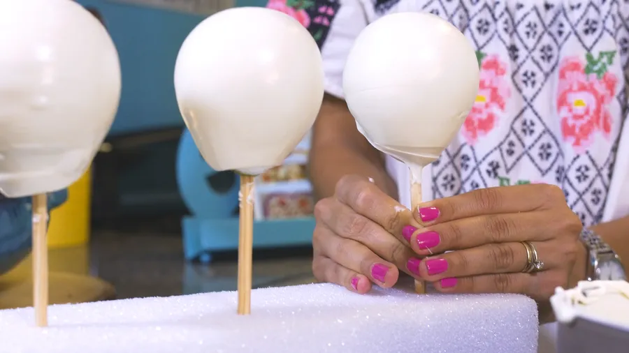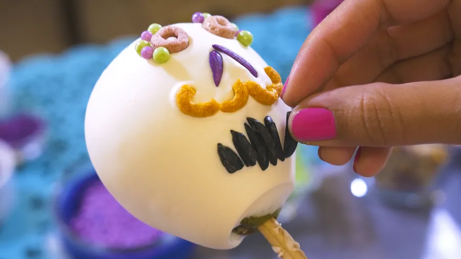 Planning your calaveritas designs before you start melting the chocolate helps a lot, considering you’ll have to finish decorating before the chocolate coating solidifies.