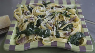 You can use fresh spinach or sautéed frozen spinach as a bed for the pasta with a bit of olive oil and mashed garlic.