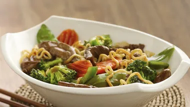 • Mixed Vegetables provide a simple addition to a zesty beef and noodle soup that's ready in 25 minutes - perfect for dinner.
