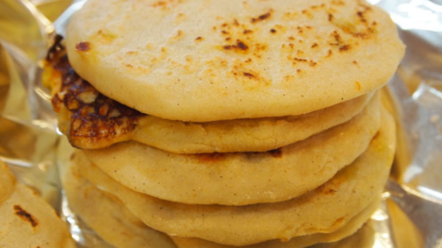 As the pupusas come off the griddle or frying pan, cover them with a paper napkin or wrap in aluminum foil to keep hot.