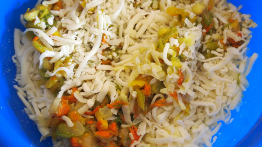 Having trouble getting zucchini flowers? Replace with coarsely shredded vegetables and sauté with cheese.